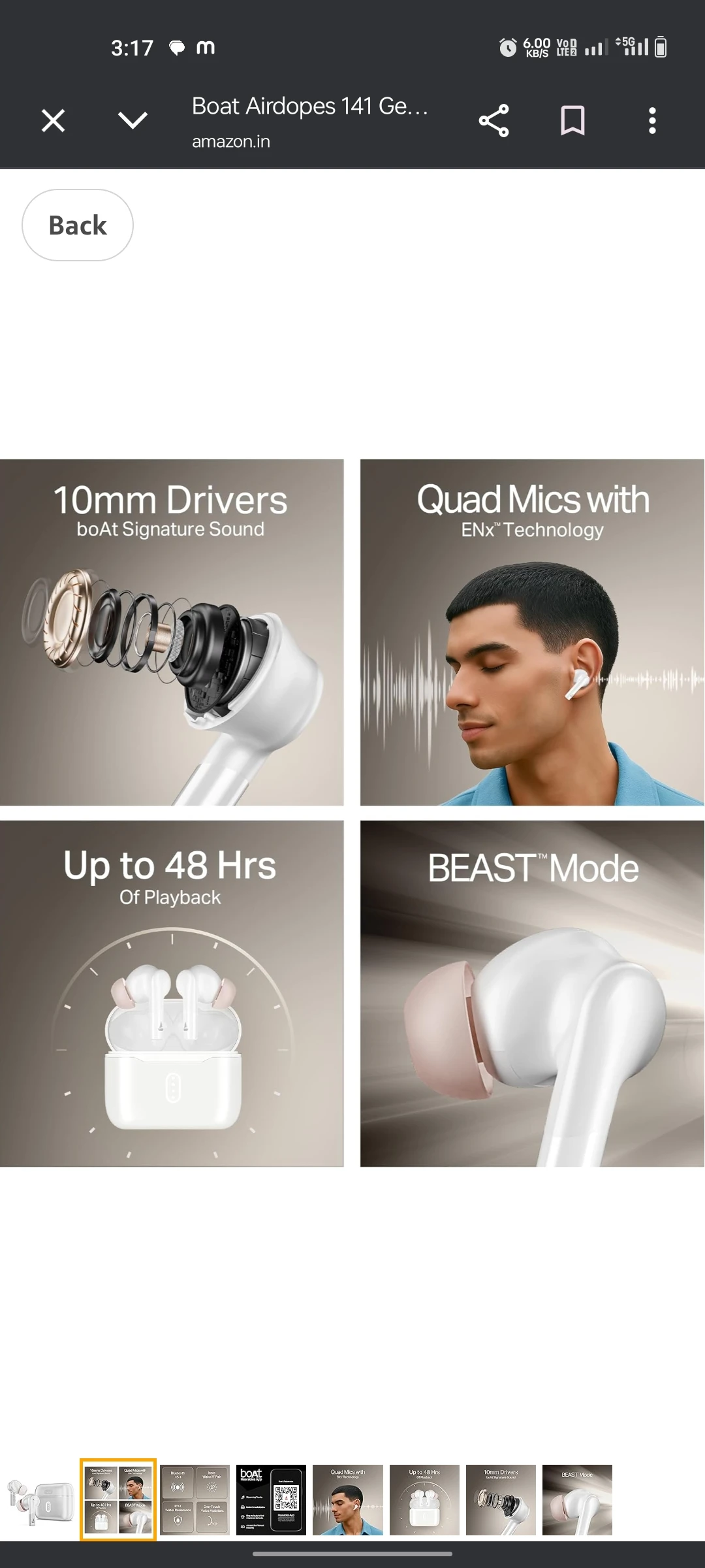 boat airdops 141 gen 2 [2025] , 4mics enx tech , 48 hrs playback , free music streming , fast charge , low latency , ipx4, v5.4 bluetuth ear buds , tws ear buds wireless earphones with mic [active white]